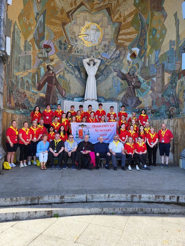 Achonry/Elphin Youth volunteer group with Bishop Kevin and Fr. John Maloney, Charlestown, and Fr. Paul Kivlihan, Ballaghaderreen, Youth leaders.